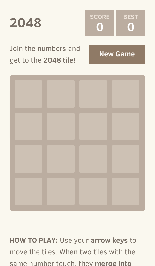 를 사용해 타일을 움직이세요. 같은 숫자의 타일이 만나면